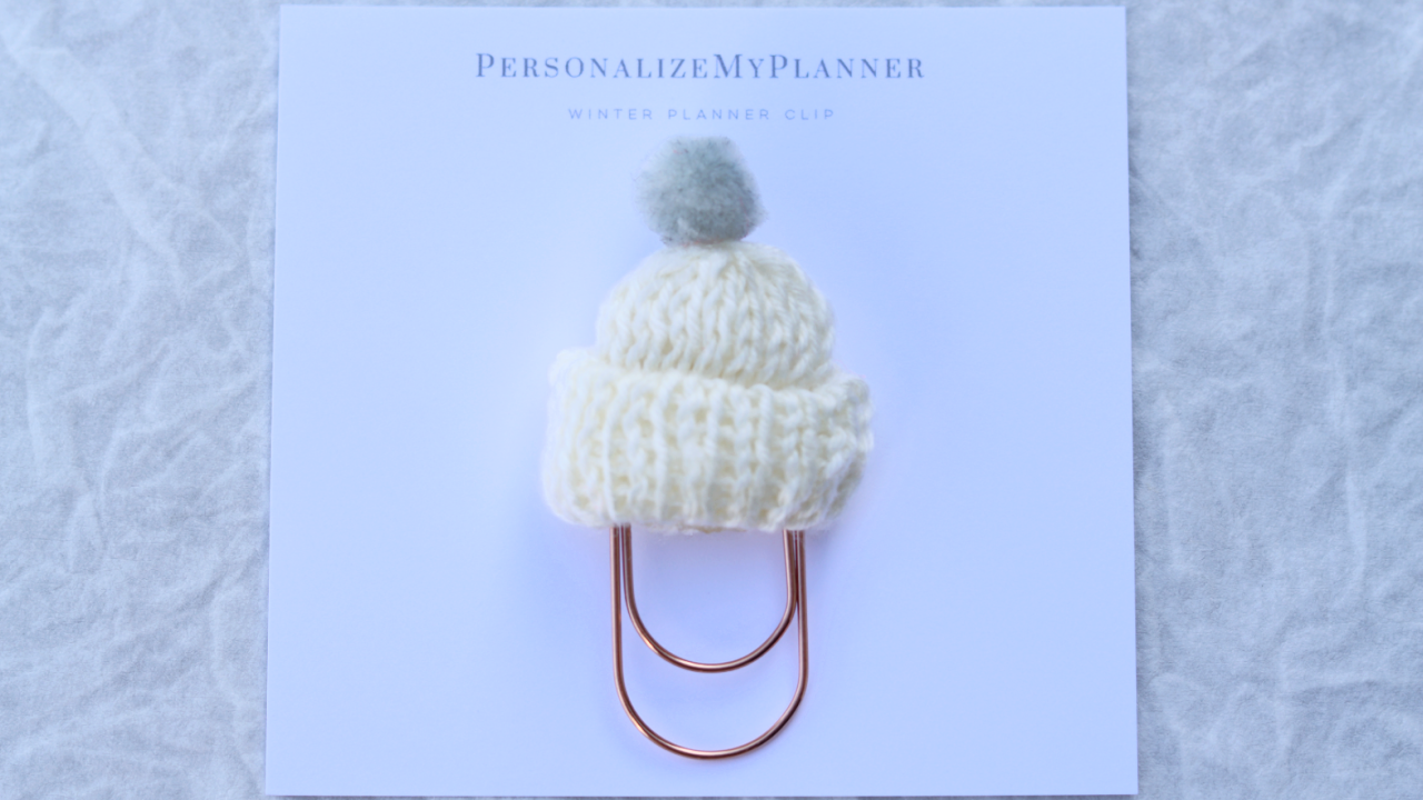 Rose Gold Paper Clip, Winter Beanie Planner Clip, Cream & Rose Gold Planner Clip, Bookmark Gift for Her, Personalize My Planner, Party Favor