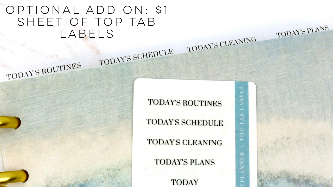 ✨Option of adding a sheet of clear divider labels for $1 (Labels Include: Today's Routines, Today's Schedule, Today's Plans, Today's Cleaning, Today, This Month, To Do List, To Read, Trackers)